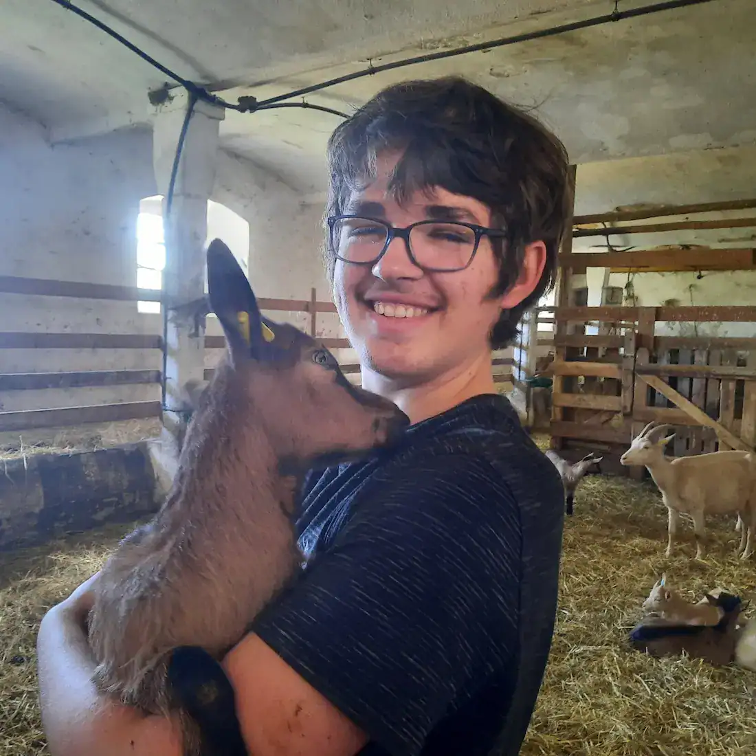 “Hi bin Frank. Ich habe mein FÖJ beim Ökolandbau in Pommritz geleistet. Das ist ein Ziegenhof mit Käserei und Backstube. Jeden Tag habe ich mich dort um die Ziegen gekümmert, beim Misten und Füttern geholfen und geschaut, ob alle Tiere gesund und munter sind. Die Ziegen haben viel Auslauf und einen schönen gemütlichen Stall, wo alle Zicklein zusammen leben, bis die Kleinen jugendlich sind. Ansonsten habe ich auch mal in der Käserei und in der Backstube ausgeholfen und bei Allem, was auf dem Hof anfällt. Es war ein super Jahr. Ich würde es jedem weiterempfehlen.”