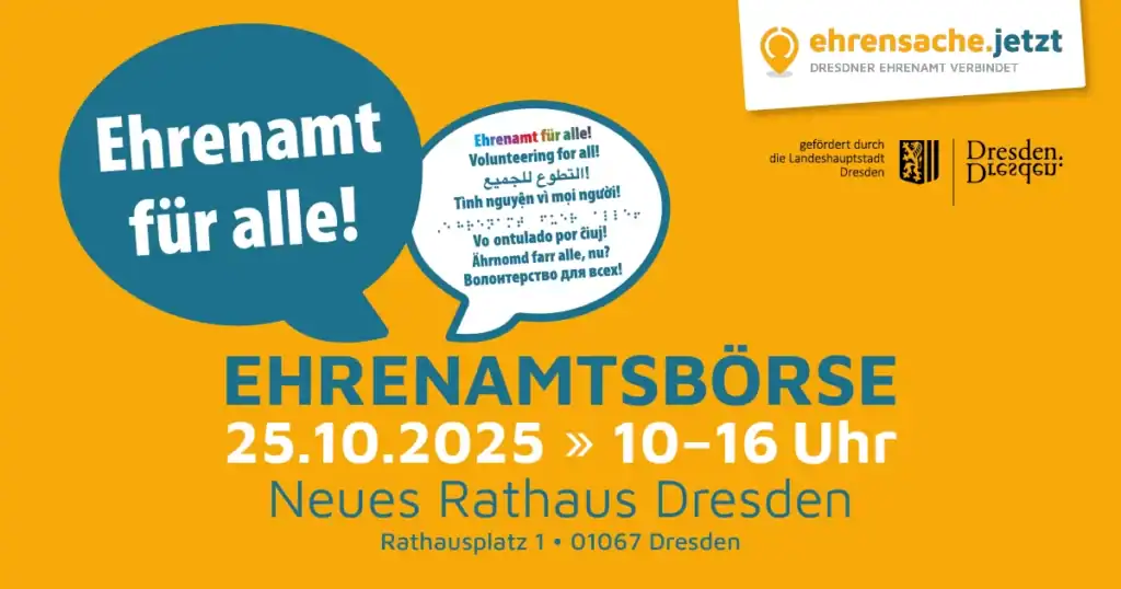 Ehrenamtsbörse am 25. Oktober 2025 von 10 bis 16 Uhr im Dresdner Rathaus unter dem Motto “Ehrenamt für alle”